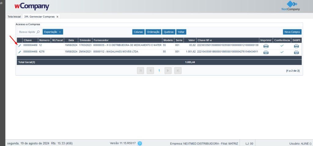 3. Retaguarda ⇾ 31. Movimentos ⇾ 311. Gerenciar Compras.