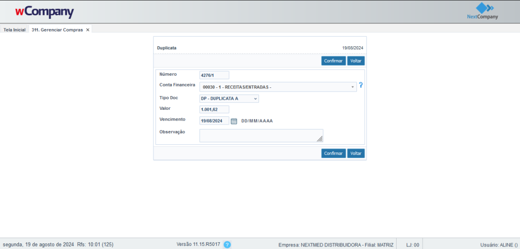 Na tela seguinte, confirme os dados da nota de entrada e clique em Finalizar Compra.